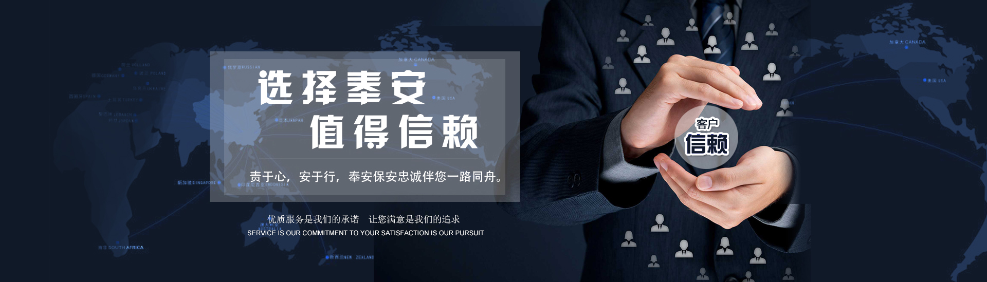 以客為尊 :客戶是公司生存和發(fā)展的決定因素,沈陽奉安保安服務(wù)有限公司堅(jiān)持以客戶為上帝的經(jīng)營理念,全力貫徹“以客為尊、以誠待客”的服務(wù)宗旨